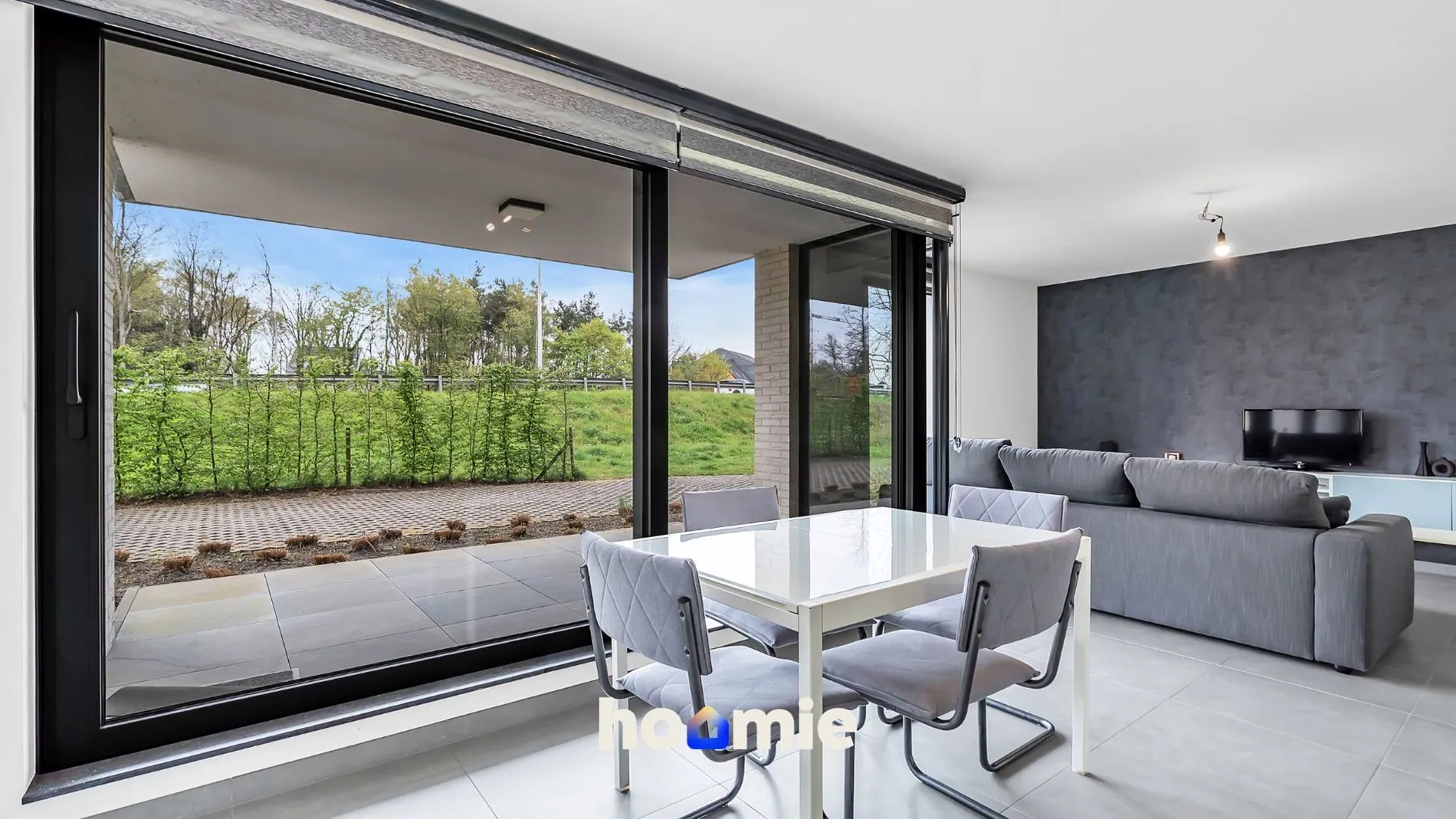 Je komt binnen via de inkomhal met ingemaakte kast en gastentoilet. De leefruimte met open keuken is ruim en aangenaam, met directe toegang naar het terras 🌿