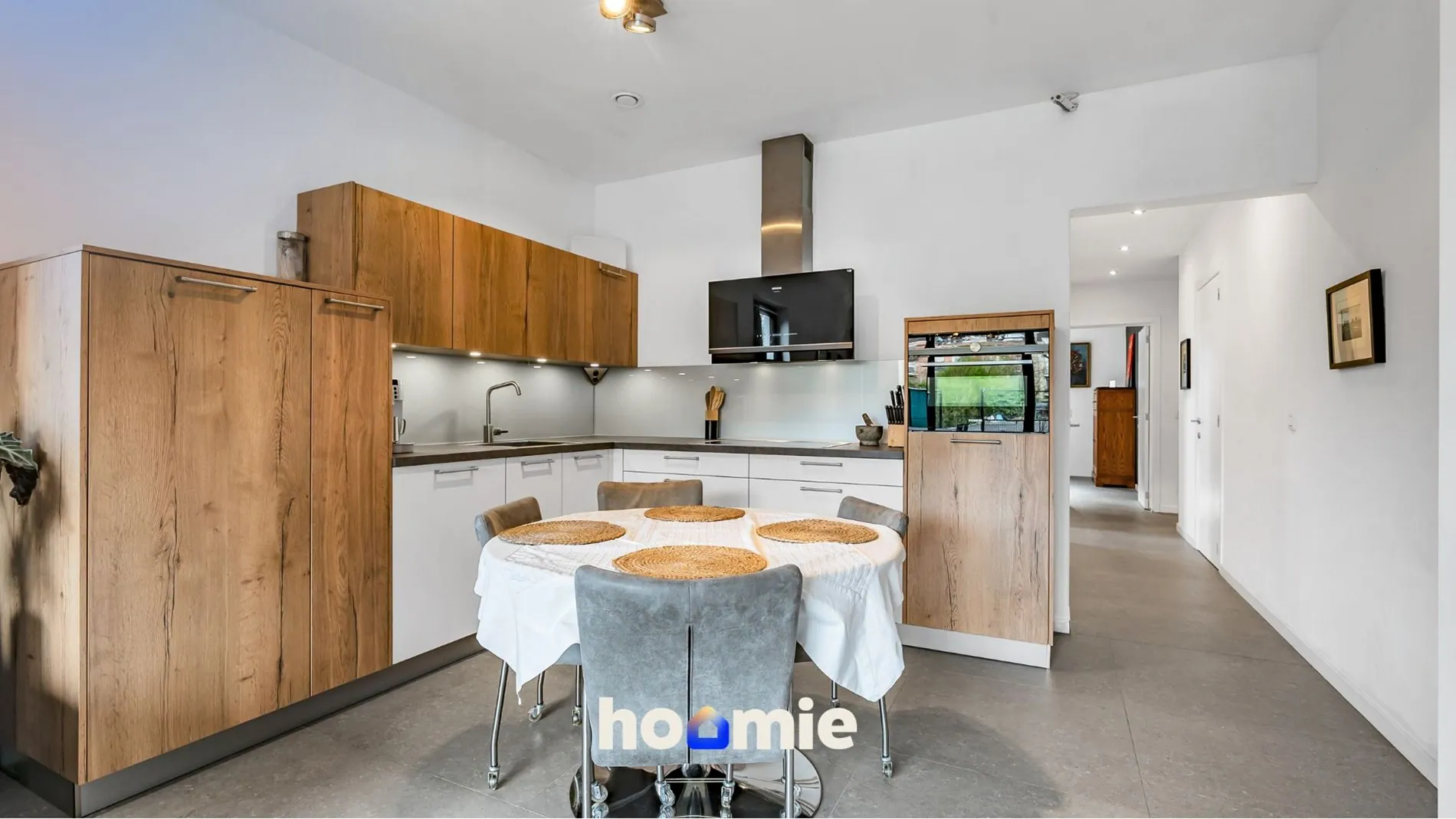 De keuken is volledig geïnstalleerd en afgewerkt met kwalitatieve Siemens toestellen (o.a. koelkast, vriezer, combi-oven, inductiekookplaat, vaatwasser), deels zelfs slim aanstuurbaar via wifi