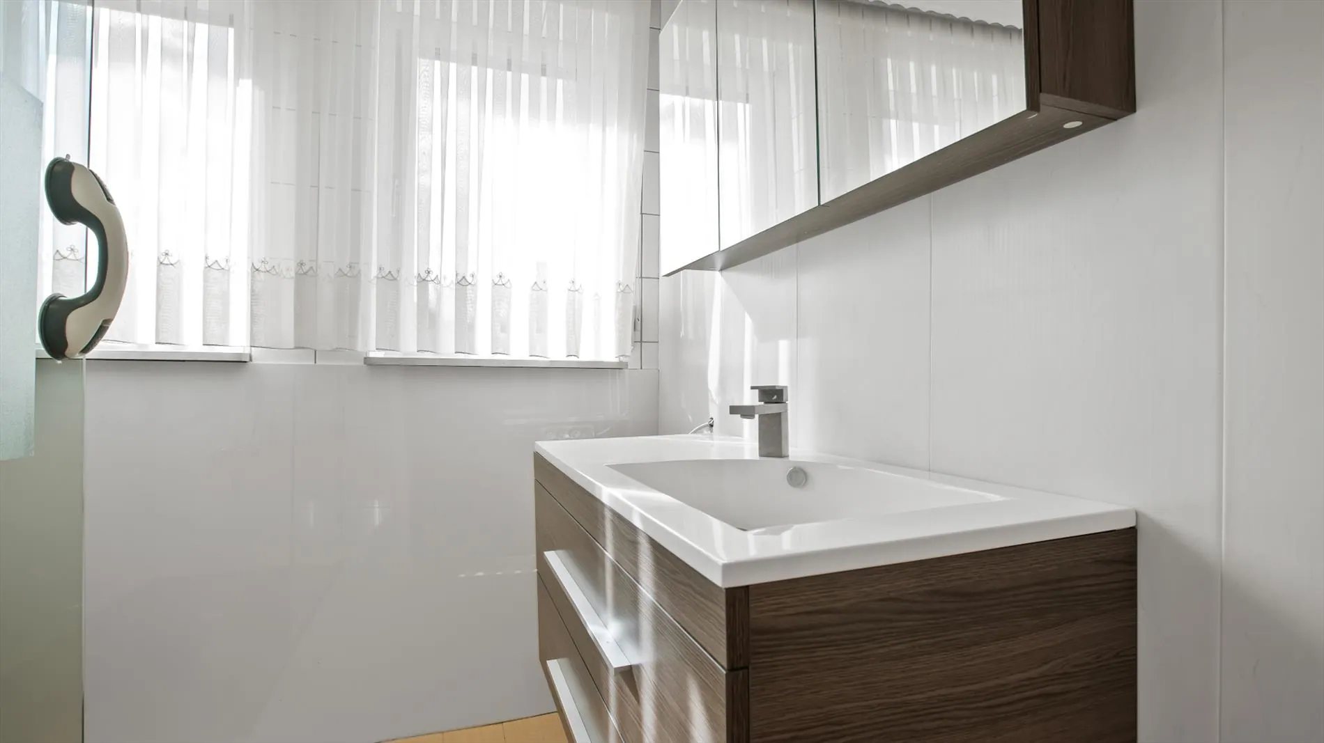 - Badkamer met inloopdouche en lavabo