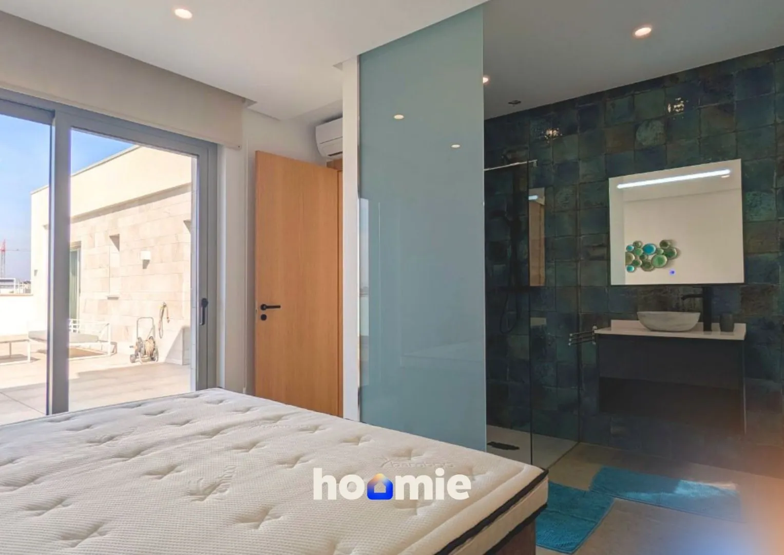 Boven vindt u drie ruime slaapkamers, elk met een eigen en-suite badkamer, wat het hoogste niveau van comfort en privacy voor elk gezinslid garandeert. Het kroonjuweel is het uitgestrekte solarium, dat een adembenemend panoramisch uitzicht biedt - perfect om te zonnebaden, gasten te vermaken of te ontspannen terwijl u naar de zonsondergang kijkt.