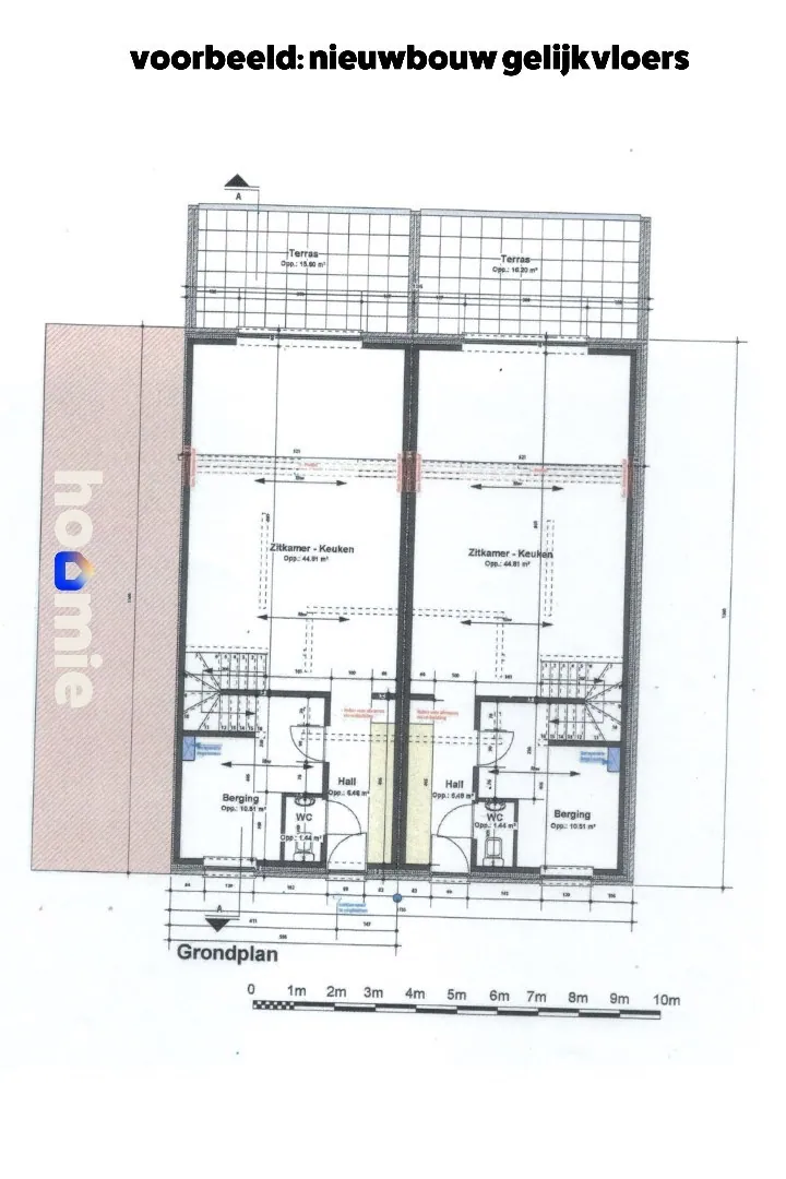 - 1 halfopen gezinswoning (gevelbreedte +/- 7,5m)