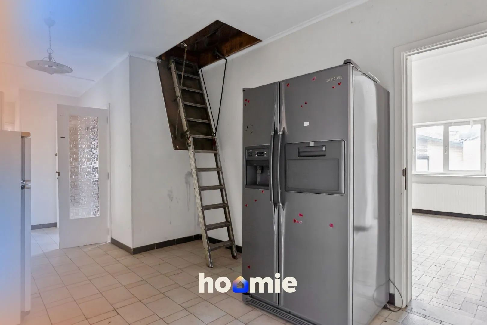 Op de eerste verdieping bevindt zich een zeer ruime woonst met een grote leefruimte, een volledig uitgeruste keuken, een badkamer en drie ruime slaapkamers. Extra troef is de grote zolder, die perfect kan dienen als uitbreidingsruimte.