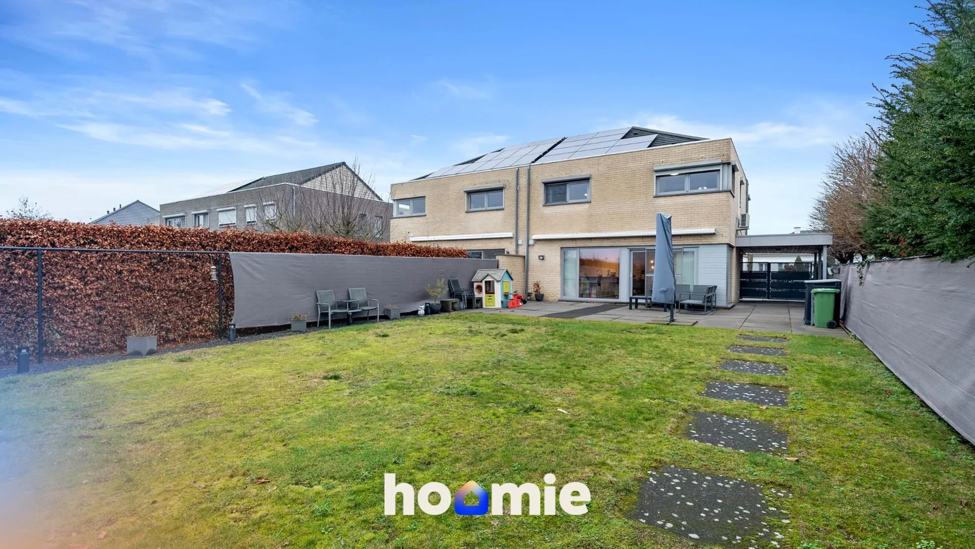 Ook buiten werd sterk ingezet op gebruiksgemak en comfort: een terras met zonneluifel, een elektrische poort, carport en voldoende parkeerplaatsen. Het ruime tuinhuis met overkapping (± 36 m²) is volledig afgewerkt en voorzien van verlichting binnen en buiten, ideaal als extra bergruimte of hobbyruimte.