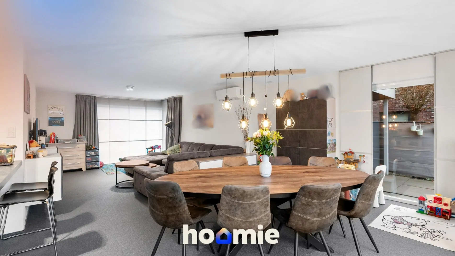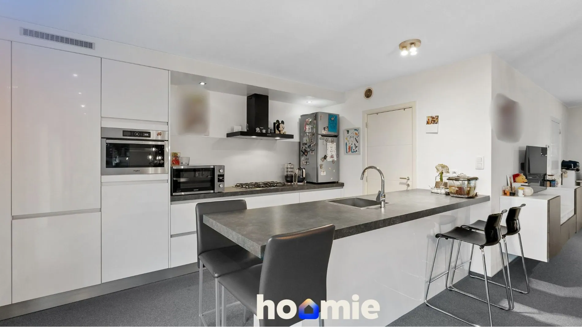 De lichtrijke leefruimte sluit aan op de open keuken, die dankzij het grote schuifraam een mooie connectie heeft met het terras en de tuin. Het gelijkvloers is afgewerkt met steentapijt, wat zorgt voor een strakke en onderhoudsvriendelijke uitstraling. Verder zijn er een gastentoilet en een berging waar alle nutsvoorzieningen netjes gegroepeerd ... zijn.