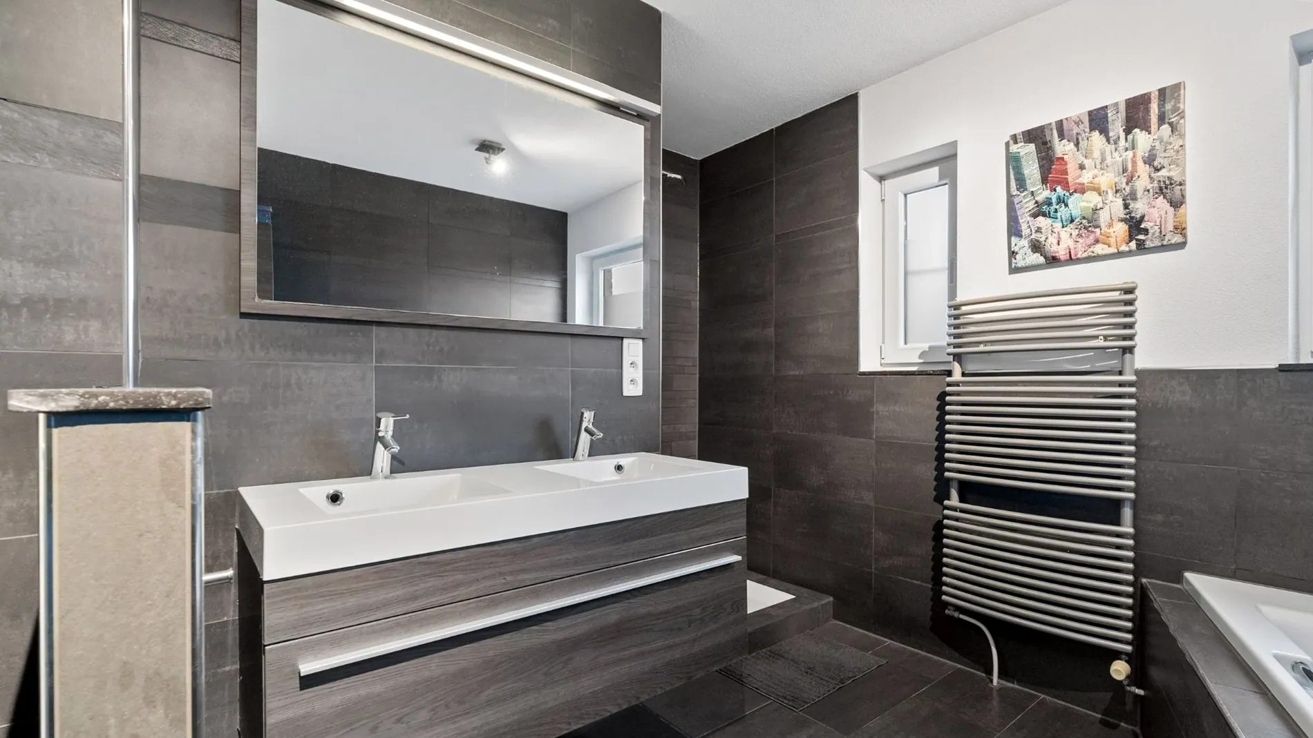 Op de eerste verdieping bevinden zich drie volwaardige slaapkamers en een ruime, volledig betegelde badkamer met douche, hoekbad, dubbele lavabo en toilet. De zolder, bereikbaar via een luik, biedt bijkomende bergruimte.