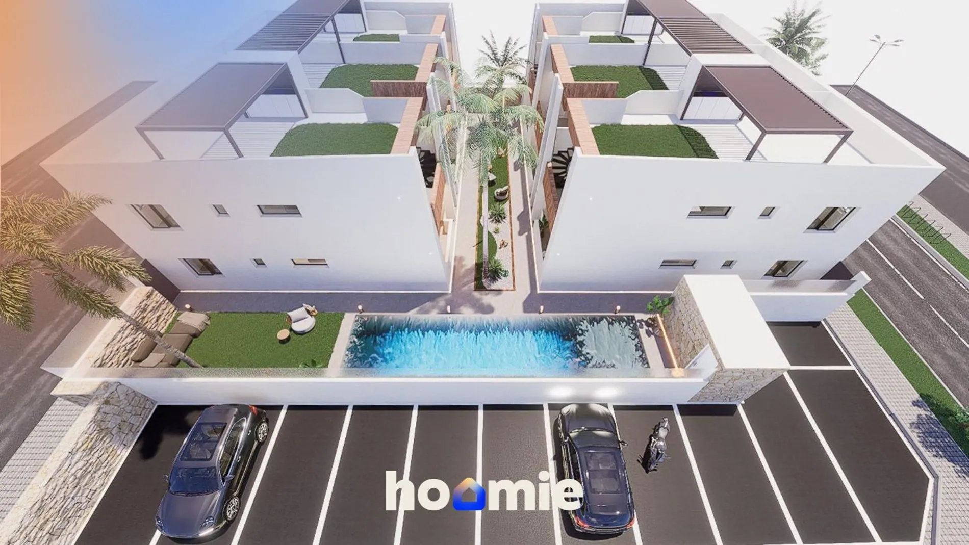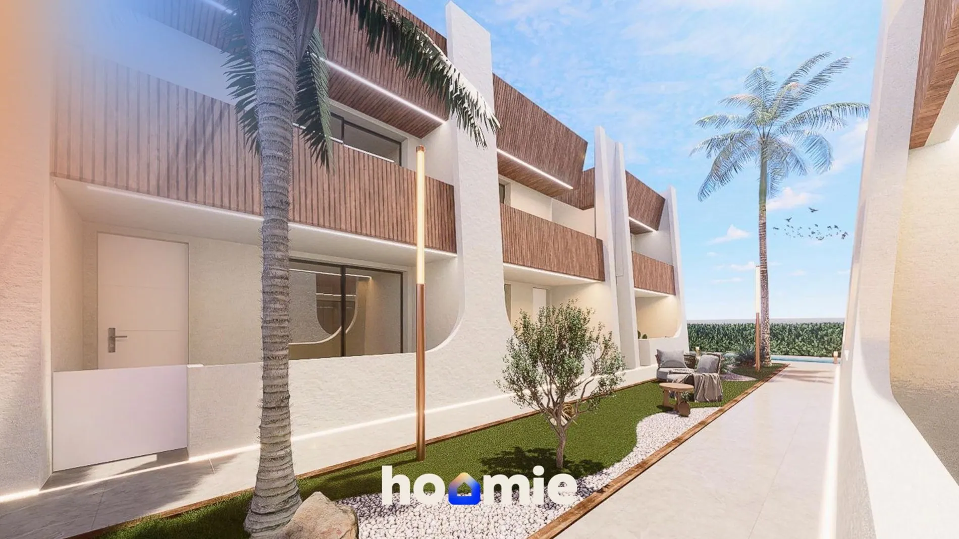Onze woningen zijn voorzien van alle interne en externe LED-verlichting, vooraf geïnstalleerde airconditioning, ingerichte keuken met inductiekookplaat, oven, vaatwasser, koelkast / vriezer en parkeerplaats. Deze nieuwe woningen hebben een looppad tussen elke structuur, met toegang tot de gemeenschappelijke tuin en het grote zwembad aan de voorkant.